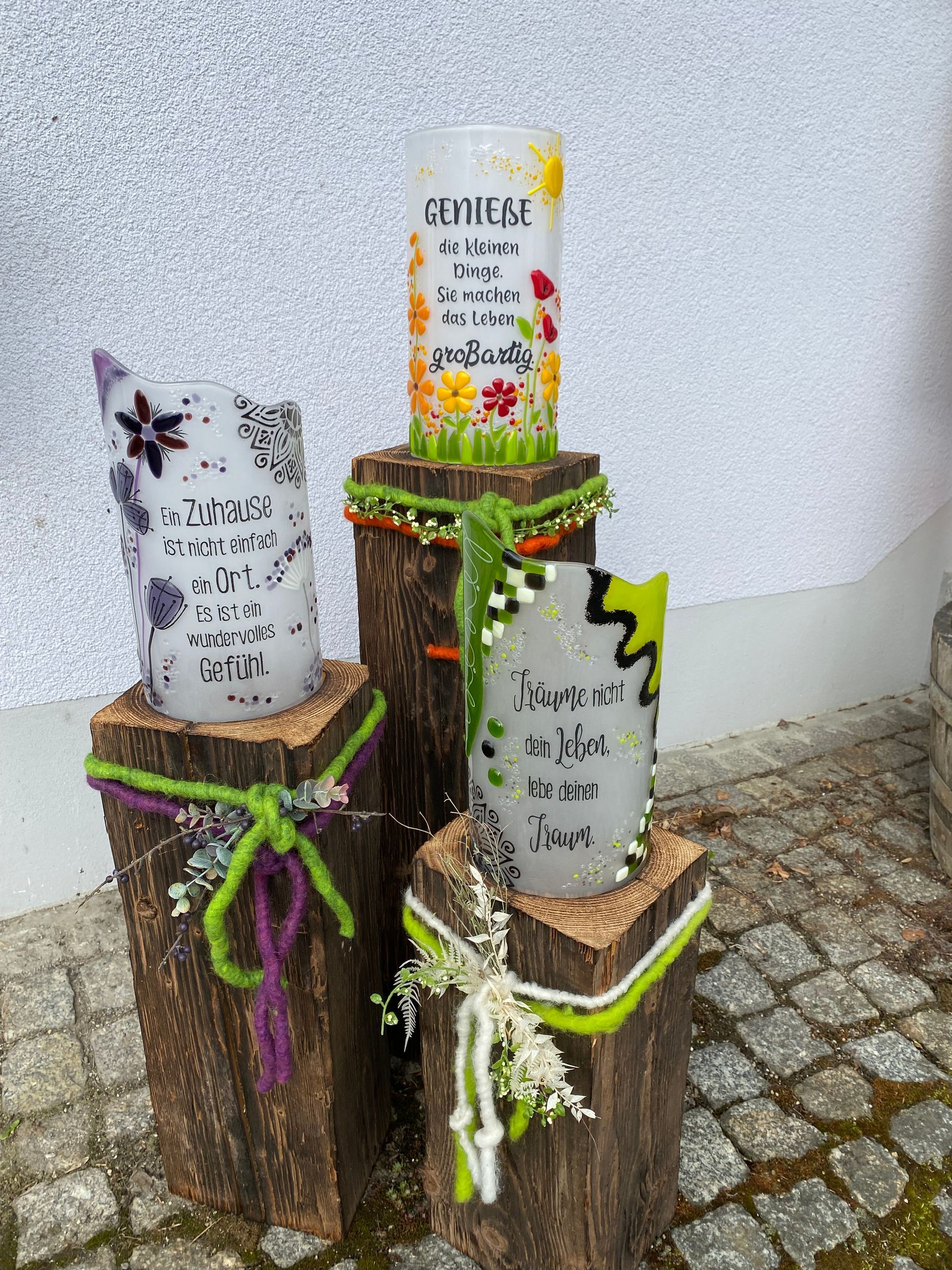 Aus einer quadratischen Grundplatte lassen sich solche schönen Windlichter gestalten.